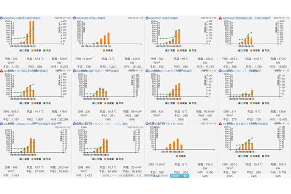 自社開発したモニタリングシステムを使用して発電所の監視を行っております。特にPCSメーカーは問わず、気象計のデータを取り込めることが特徴です。太陽光発電量と日射量には顕著な相関関係があり、発電所の不具合の早期発見には欠かせません。その他、風速、温度などあらゆるデータを観測し分析することが可能です。
