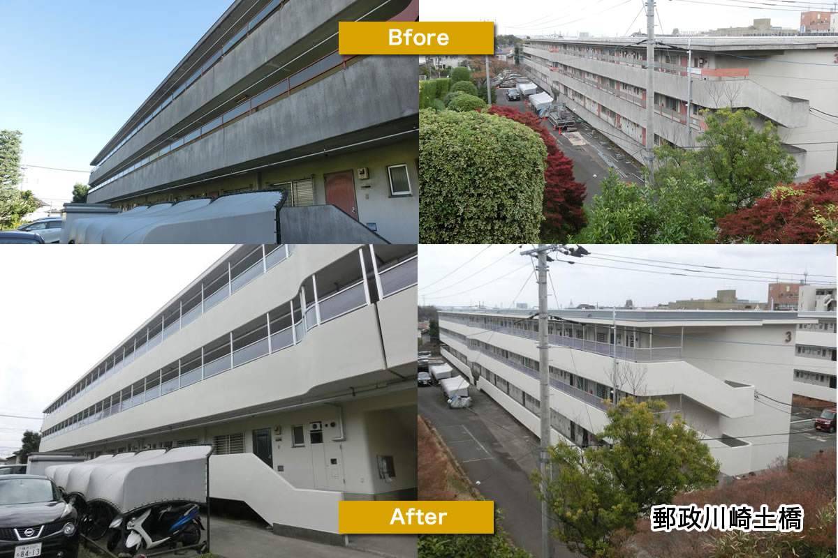 | 工事内容 | 築27年の分譲マンションの内外装及び外構を含めた大規模なリノベーション工事になります。 経年劣化した外装、防水部分を調査、診断し、末永く建物を維持していくための改修プランをご提示、全面的な改修工事を行いました。また内装部分については、狭い間取りを現代の生活スタイルに合うよう、リノベーションし、最新の設備機器や壁、床の改修を行いました。 |